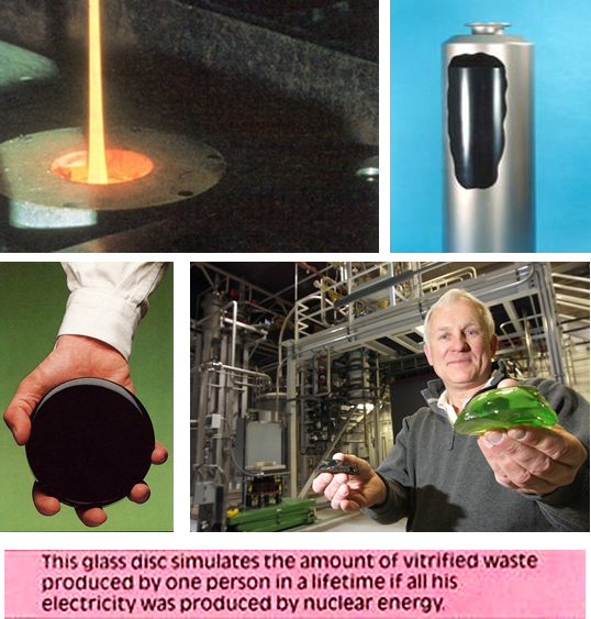 หลังจากกระบวนการแปรสภาพเชื้อเพลิงแล้ว กากกัมมันตรังสีระดับสูงที่เหลือจะถูกทำให้แห้งจนมีลักษณะเป็นผลแห้ง เราเรียกกระบวนการนี้ว่า แคลไซนิ่ง หลังจากนั้นกากกัมมันตรังสีจะถูกนำไปหลอมให้เป็นเนื้อเดียวกันกับแก้วชนิดพิเศษโดยใช้ความร้อนสูงมาก (Vitrification) จากนั้นเทบรรจุลงภาชนะเหล็กไร้สนิมหรือทองแดง แล้วจึงนำไปจัดเก็บในสถานที่ที่ถือว่ามีความปลอดภัยสูงสุดในปัจจุบัน คือ ฝังลงในชั้นหินแข็ง ความลึกจากระดับผิวดิน 500 – 1,000 เมตร ภาชนะบรรจุกากกัมมันตรังสีที่ทำจากเหล็กไร้สนิม หรือทองแดงซึ่งมีความคงทน และการแปรสภาพเป็นผลึกแก้วนั้น สามารถเก็บสารกัมมันตรังสีไม่ให้รั่วไหลออกได้นานนับพันปี ซึ่งเป็นช่วงเวลาที่กากกัมมันตรังสีจากการสลายกัมมันตรังสีของยูเรเนียมสลายเกือบหมด ส่วนธาตุที่มีครึ่งชีวิตยาว เช่น ยูเรเนียม พลูโทเนียม และอะเมริเซียม จะมีอันตรายทางรังสีเท่ากับแร่ยูเรเนียมในธรรมชาติเท่านั้น